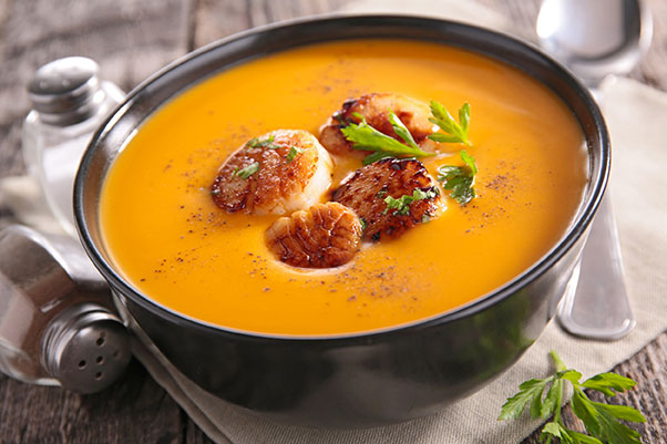 Noix de Saint-Jacques et crème de potiron :