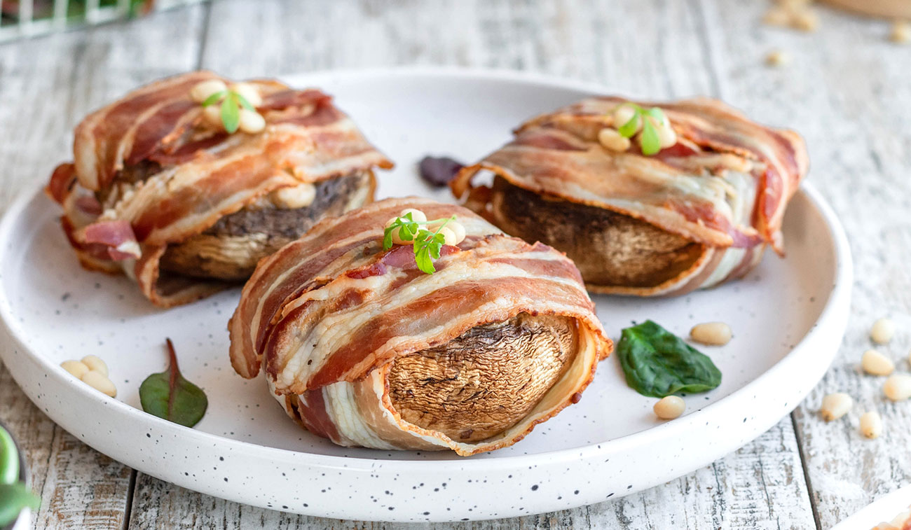 La deuxième idée de ces 3 recettes de champignons farcis est une délicieuse recette de champignons farcis au fromage et enroulés dans du bacon. Cette recette est parfaite pour un apéritif ou une entrée.